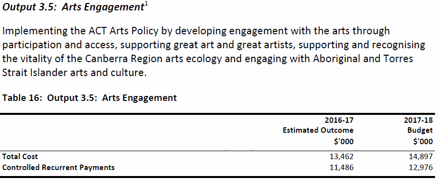 - Contribution to the ACT’s critical arts infrastructure through provision of diverse high quality programs, services and facilities that are responsive to community needs and enable strong participation and access opportunities for the ACT community.